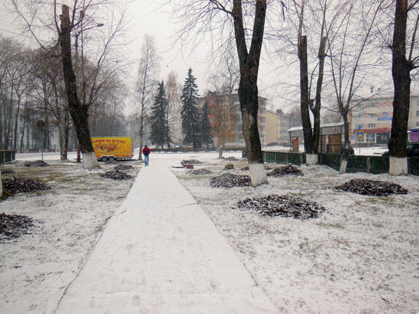 Листья палые сгребают