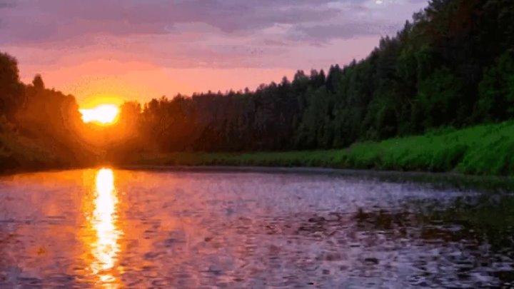 Над рекой повис золотой каймой.