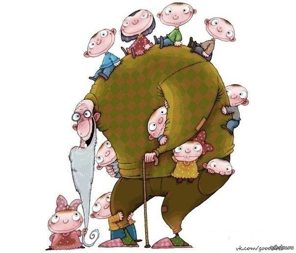 Ёлочка из внуков на плечах.