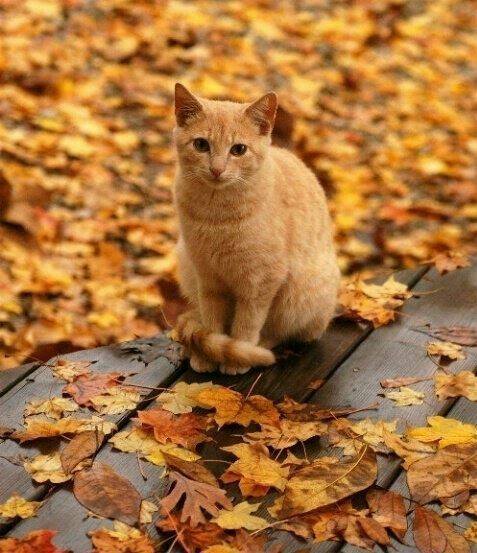 Рыжий кот и жёлтый лист,