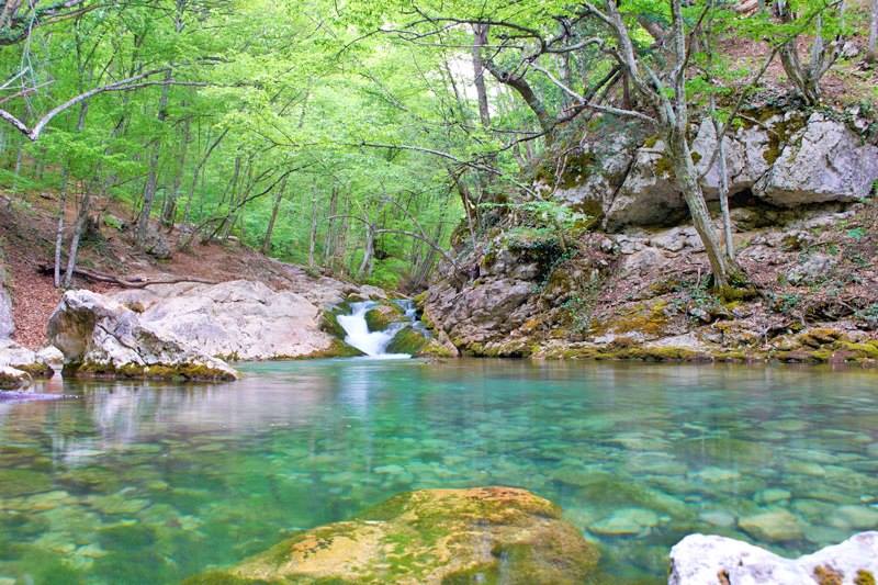 *Речь идёт о горной речке Коккозка (в переводе с тюркского «Голубоглазка», которая берёт своё начало от Большого крымского Каньона и «разрезает» территорию села Соколиное, неся свои воды по всей долине Коккоз (старое название села), являясь притоком реки Бельбек, которая впадает в Чёрное море.