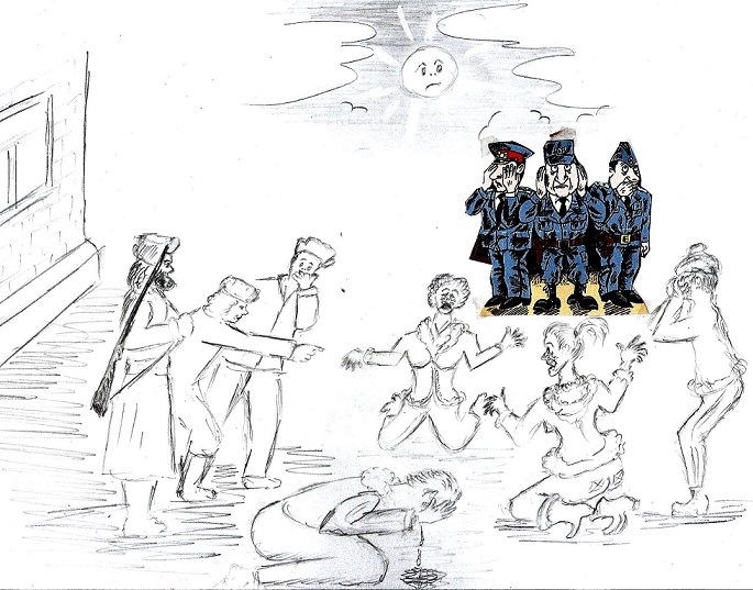 Девочек так же извозили в фикалиях лицами, их тоже стошнило и их, плачущих, тоже отправили в компанию мальчиков. При этом девочки как кошки кинулись на мальчиков и стали их избивать, за то, что они их втравили в такое «увеселение»!
