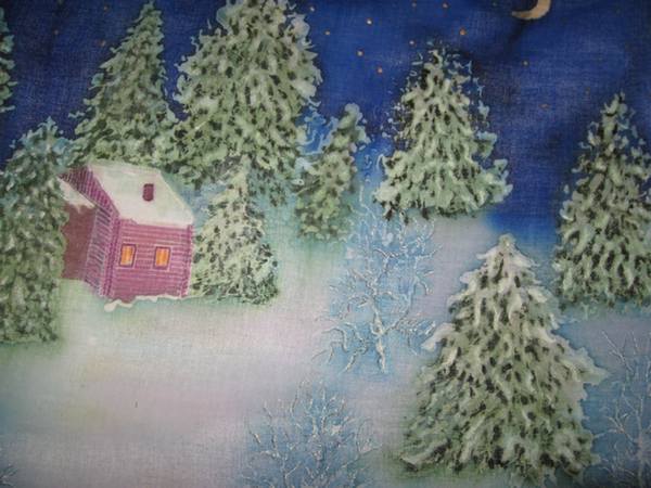 Картина. Зимой. Батик. Авторское исполнение.