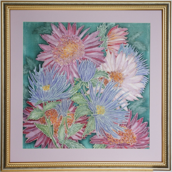 Картина. Астры. Батик. Авторское исполнение.