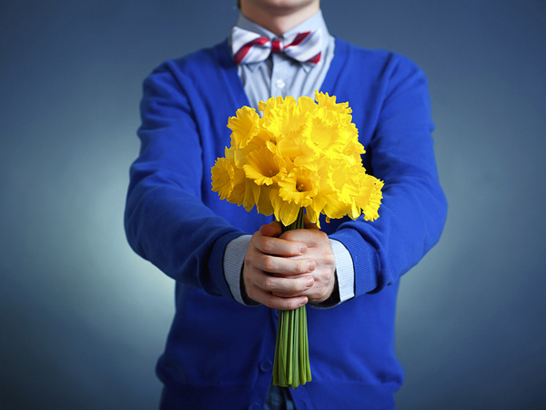 Букет цветов мой муж держал в руках.