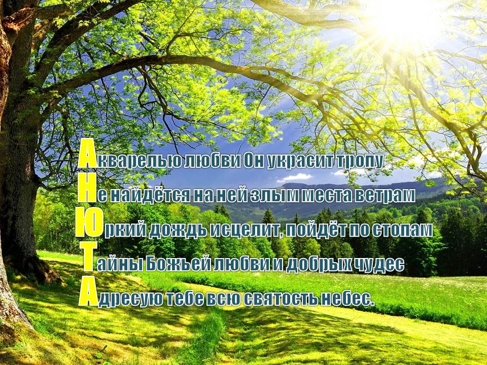 К любому празднику или просто без повода, чтобы порадовать дорогого Вам человека. Сувенир с нужным именем в стихах. Либо любая другая аббревиатура. К каждому заказу индивидуальный подход. Фото можно поставить в рамку, распечатать на майке, кружке и т.д. Также можно писать на личном фото того, кого хотите удивить необычным подарком. Буду рада Вашей смс или звонку. +375 25 705 16 88. Sacha German.
