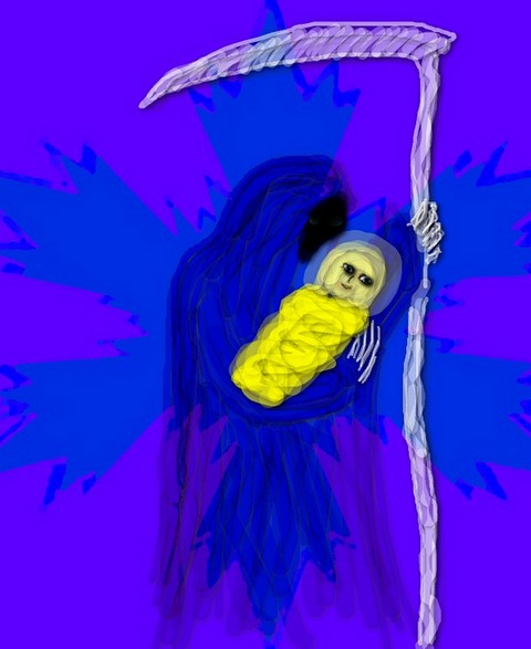 Старуха с косой и младенец,
