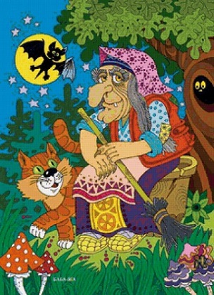 С котом, совой и ступой настоящей.