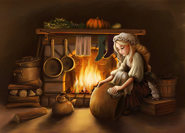 Золу из печки выгребала.