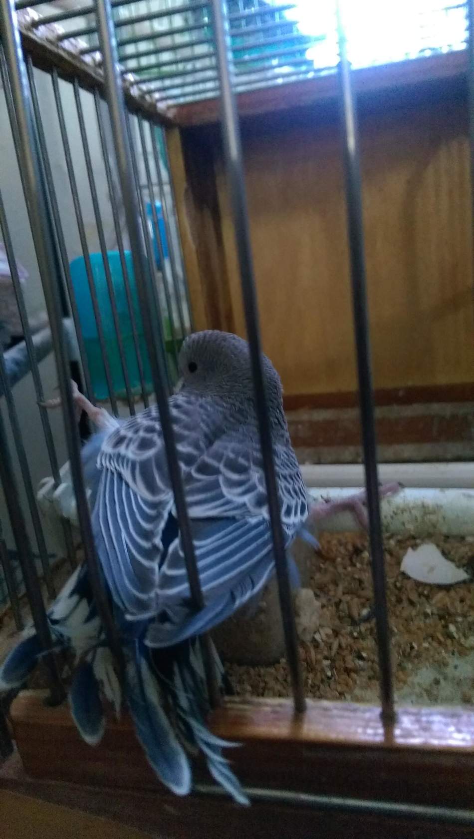 Кафтанчик голубой,а крылья серо-белые.