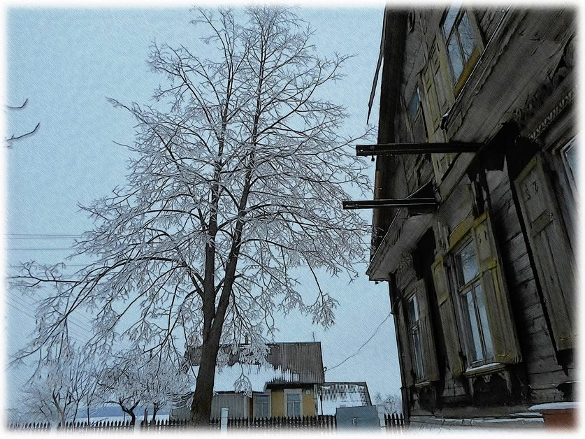 Деревня зимняя мила,