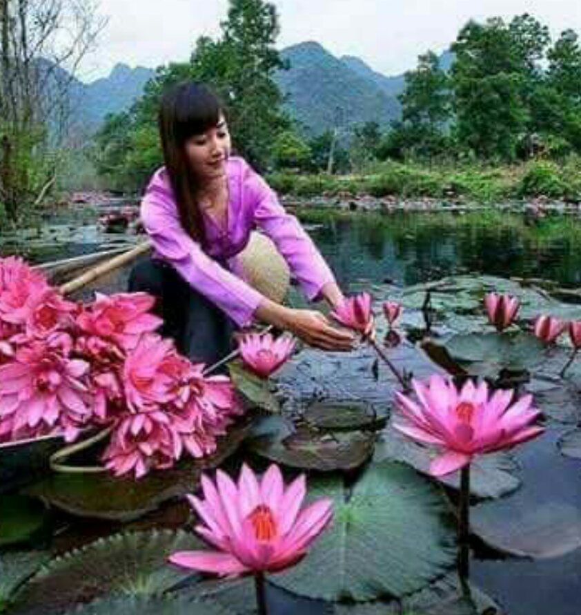 Она собирает лотосы каждый день.