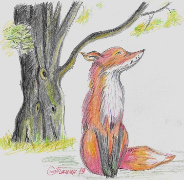 Лиса, сглотнув слюну, хвостом виляет: