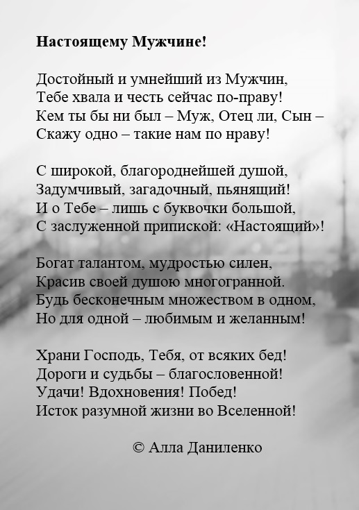 #поэзия_Алла_Даниленко #alla_danilenko_brest #alla_danilenko_poetry #алладаниленко #Алла_Даниленко #Алла_Даниленко_Брест #versus #poetry #стихи #поэзия #брест #brest #любовь #отношения #песенная_поэзия #лирика #мечта #Я_ЕСТЬ #стихиру #стихи_ру #философия_жизни #двадцатьтретье_февраля #Дню_Мужчин #Мужчине #НастоящийМужчина