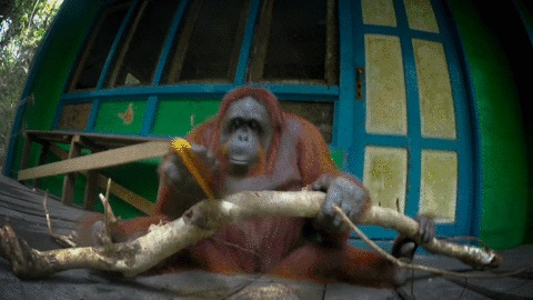 Когда он палку в лапу взял,