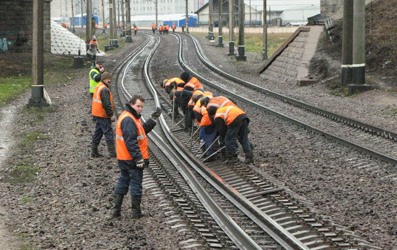 Загнали лом под рельс сквозь щебень