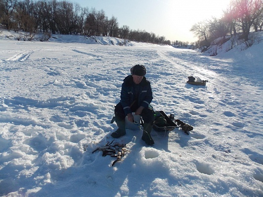 На снимке: Александр Болдырев на зимней рыбалке на реке Ишим.