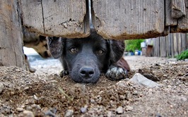 протискивался тельцем под забор.