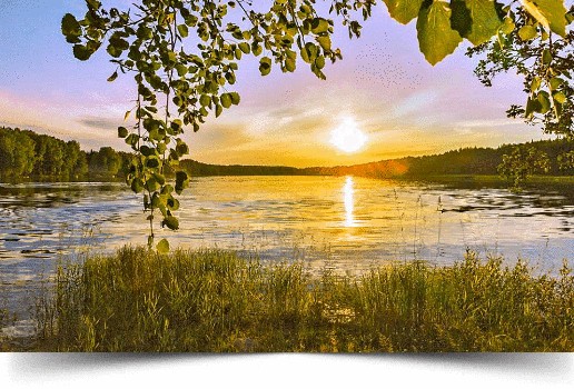 Наклонились над водою веточки берёзки,
