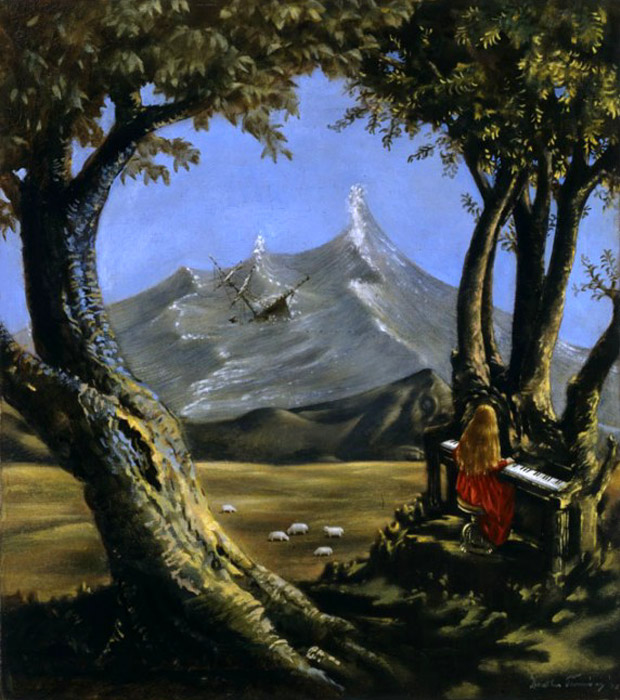 Вот пианистка в платье алом,