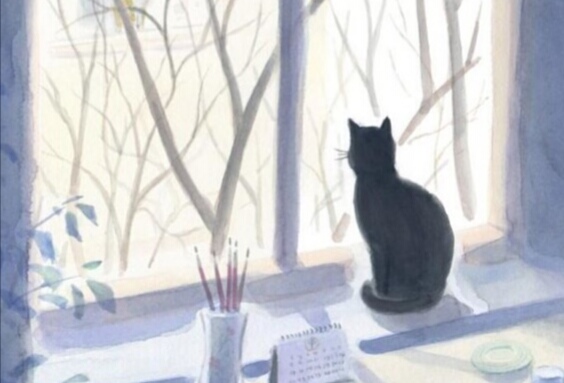 Кот у окошка - на солнышке греется,