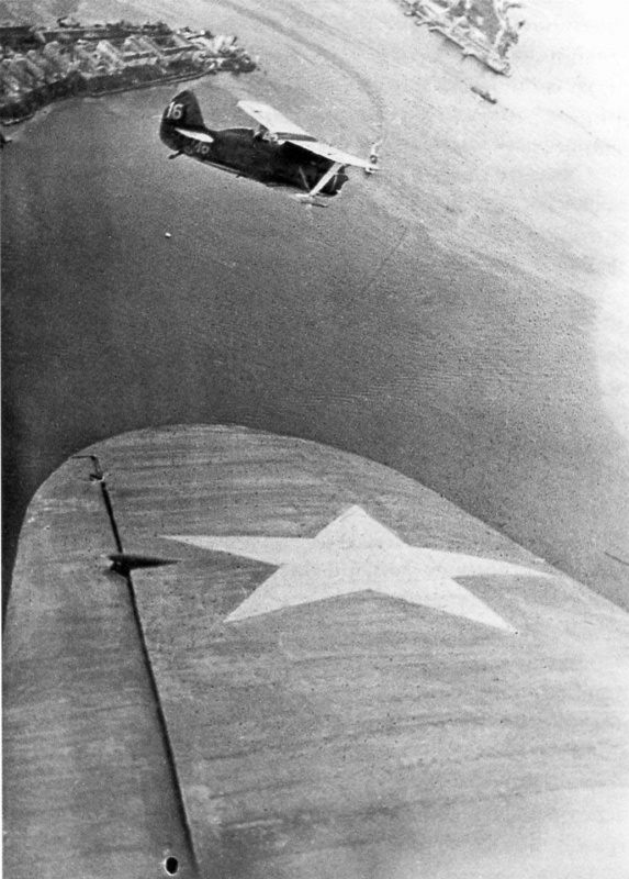 *Фото: Советские истребители И-153 «Чайка» в полете над Севастопольской бухтой...............