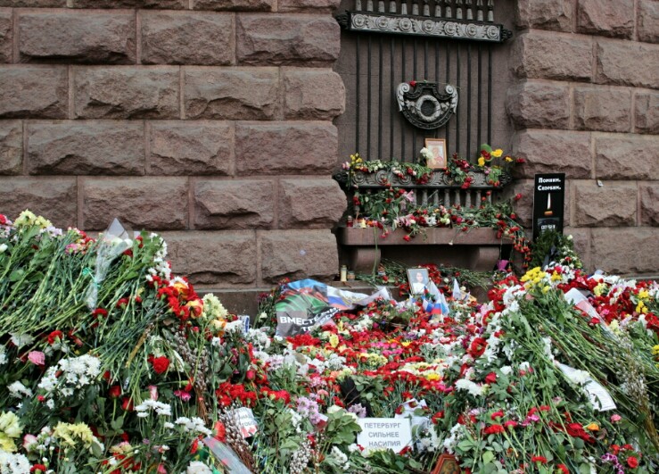 Гвоздики у метро и свечи...