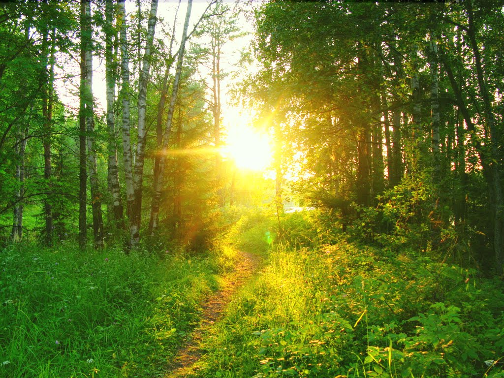 Лучик солнца в листве мокрой встретил