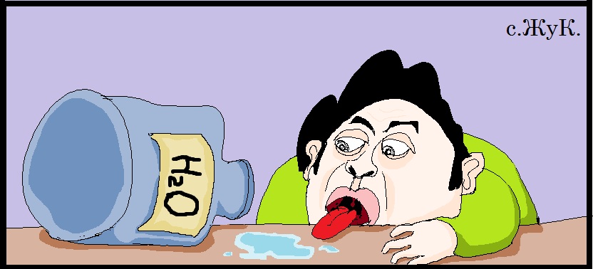 Жадно и долго пьёт воду…………….