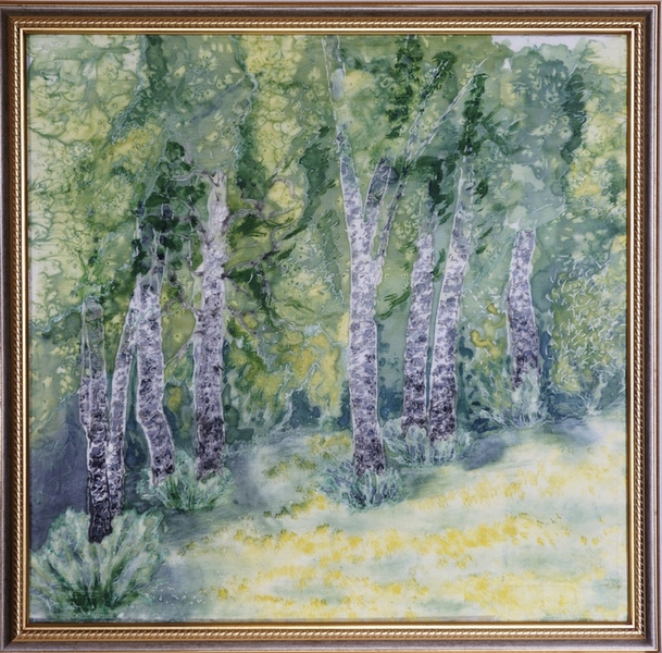Картина. Берёзки. Батик. Авторское исполнение.