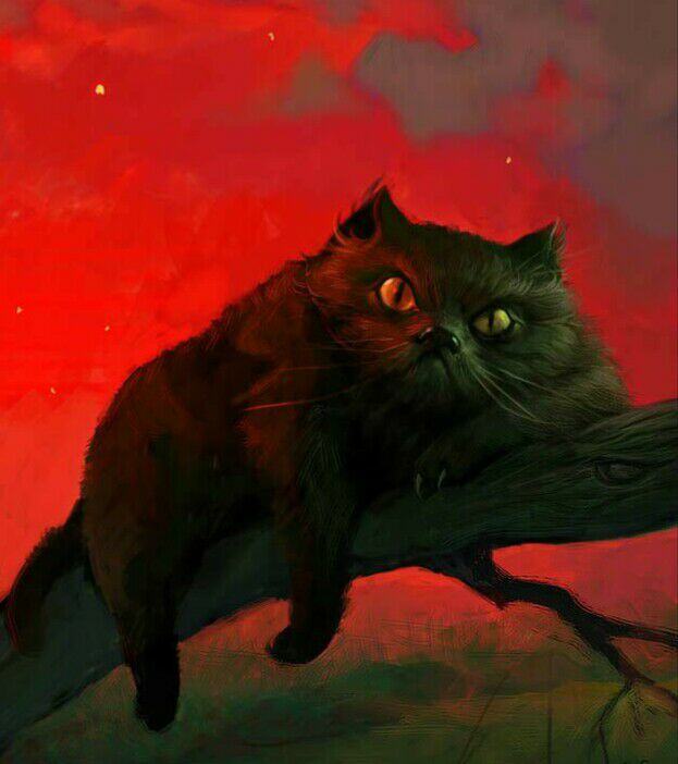И точно - через мгновение на лужайку из леса вышел огромный черный кот. Он двигался вальяжно, словно тигр или лев, вобщем, ни дать ни взять царь зверей, ну или, как минимум, кошек. Шерсть у кота была блестящая, иссиня-черного цвета, большие желтые глаза прямо таки излучали хитрость их владельца, а пушистый хвост, как и положено хвостам при хорошем настроении торчал трубой. Завершали портрет нежданного гостя маленькие кисточки на кончиках ушей. Заметив наших друзей, он перестал мурлыкать свою песенку и направился прямо к ним. Подойдя своей царственной походкой достаточно близко для приветствия, кот произнес:
