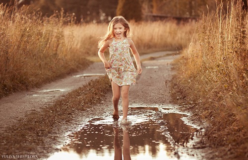 По лужам мчать, счастливой и босой.