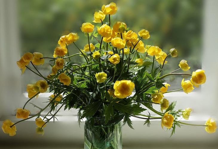 Жёлтым солнцем - купальницы в банке,