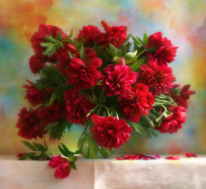 Лепестки пионов красных