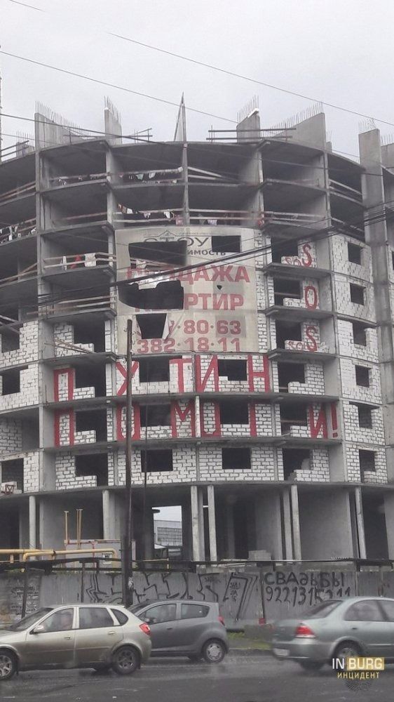** В Екатеринбурге перед визитом президента на доме появилась надпись «Путин помоги»