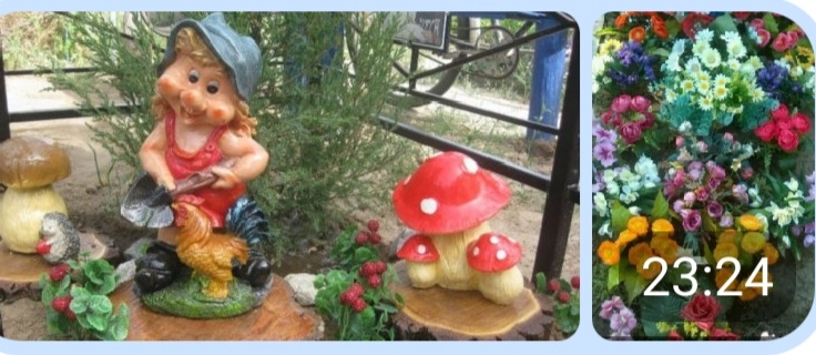 ВОЗЛЕ ЗАЙКИ И ГНОМИКА - ГРИБЫ И ЕЖ.