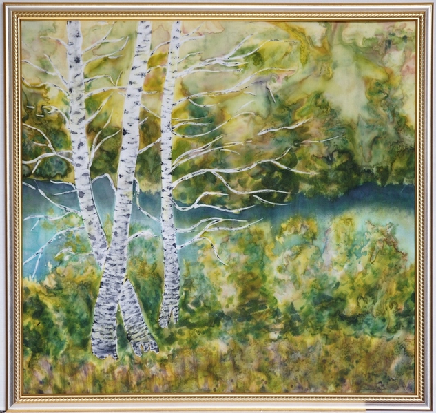Картина. Берёзки. Батик. Авторское исполнение.