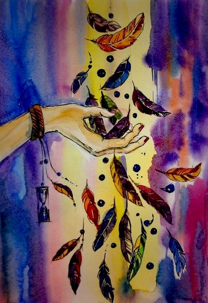 Последующие четыре месяца Кирилл работал на автопилоте, выполняя все аэрологические и геофизические измерения и отсылая ежедневные отчёты. Наконец, на станцию прибыл его сменщик и Кирилл вернулся в Москву. Столица встретила его деловитым, суетным ритмом, закружила в работе и встречах. Примерно через неделю после приезда знакомый художник пригласил его на свою персональную выставку в небольшой выставочный зал. Идти не хотелось и Кирилл решил. что ему это ни к чему. Но с самого утра ему постоянно попадались афиши с приглашениями на выставки и художники с мольбертами, пишущие пёструю весеннюю Москву. А вечером, когда Кирилл уже шёл в сторону дома, произошло из ряда вон выходящее событие. Он увидел как что-то яркое мелькнуло перед лицом и инстинктивно схватил это. В его руке оказалось довольно большое разноцветное перо. Удивившись, Кирилл поднял голову вверх, как будто хотел увидеть в небе жар-птицу, но, разумеется. никого не было. И как-то сами собой ноги понесли его на выставку.
