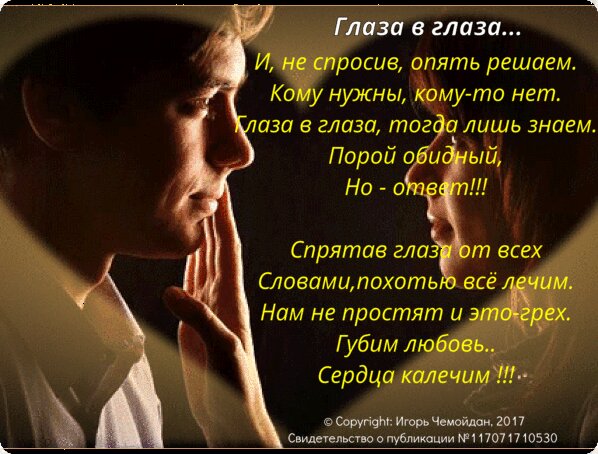Глаза в глаза, тогда лишь знаем
