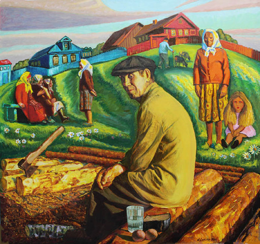 Картина "Деревенский плотник". Художник Николай Ларский