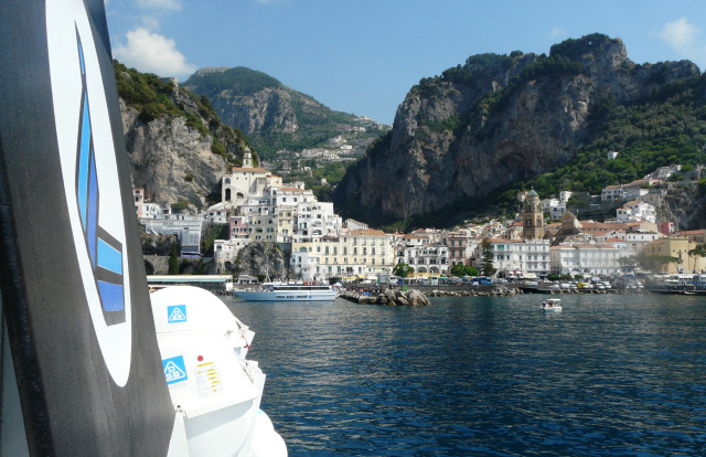 После 30 минут «битья себя по рукам» и любования амальфитанскими берегами, дышащими древними мифами и легендами, наш кораблик с современным Одиссеем-матросом подходит к самому городу.
