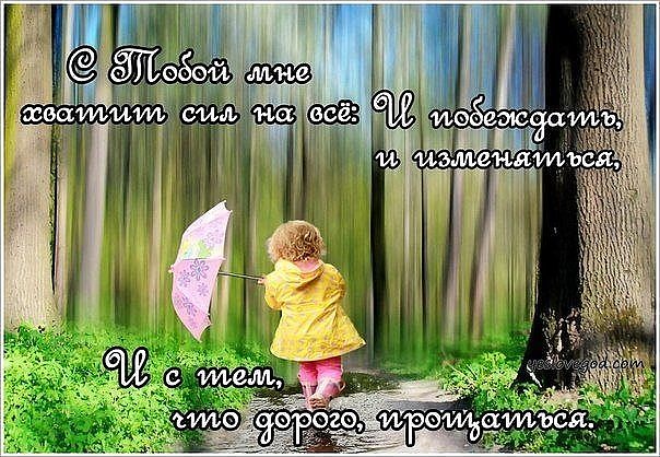 Если тебе отчего то взгрустнулось,если в твой дом постучала печаль,дождиком счастья печаль обернулась,в мире невзгод здесь,душа не страдай!В мире невзгод окрыляйся душою.Небо святое горит в алтарях.В мире земном навсегда есть нас двое.В каждой душе есть Господь и алтарь.Стоит лишь только увидеть святое.Небо святое в себе разглядеть.Небо в душе!Чудно так-вместе двое.Небо в душе,свято небо в душе!