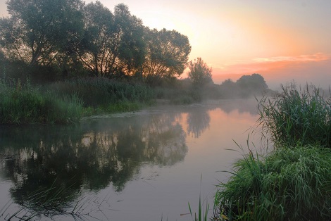 - Туманом покрыта река.