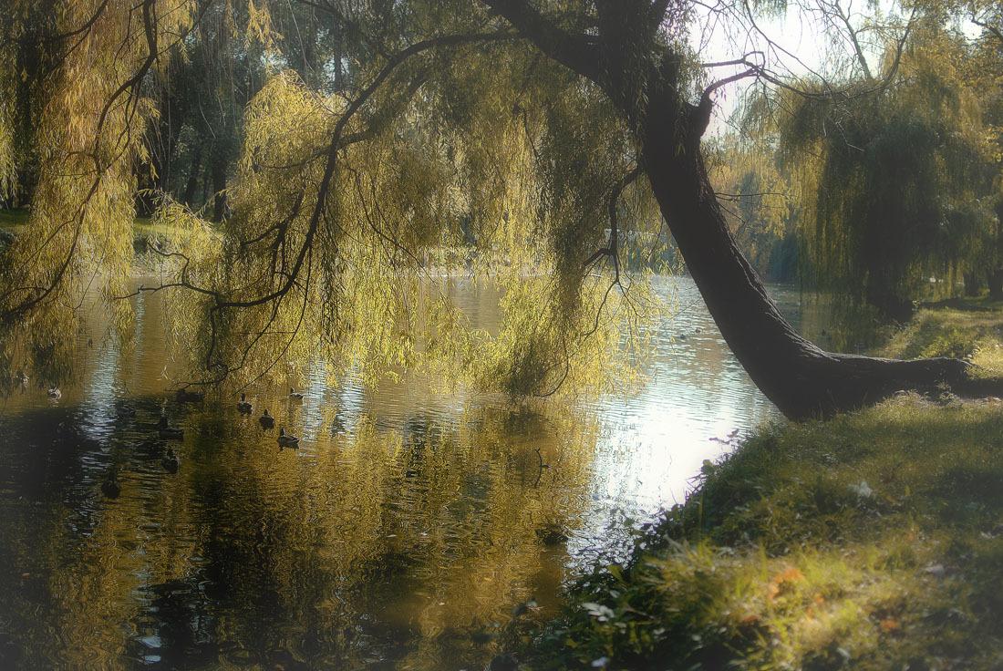 Веткой ива воду, как строгою,