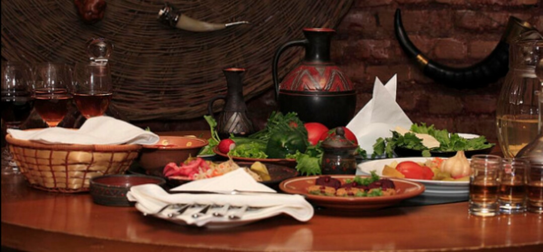 Стол накрыт, за ним все трое