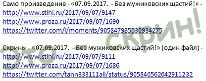Скрин ссылок на - 07. 09. 2017. Без мужиковских ща