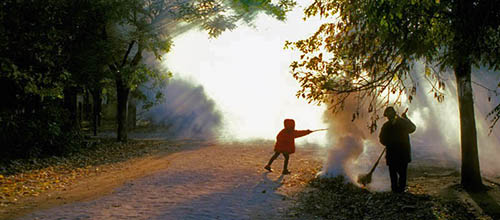 Листва с деревьев отлетает.