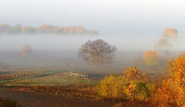 И в туман укутался поселок: