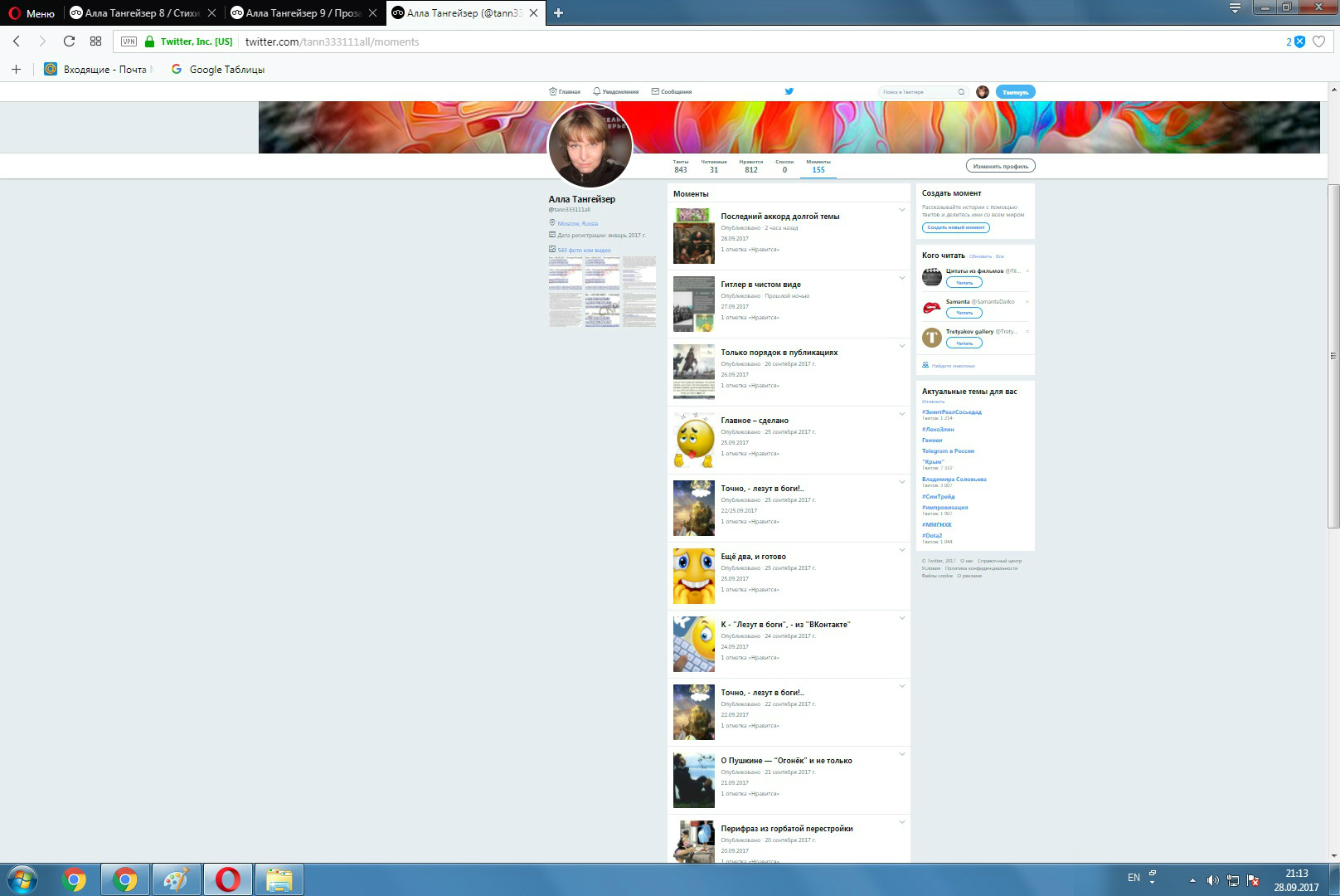 Моя страница Твиттера. Моменты