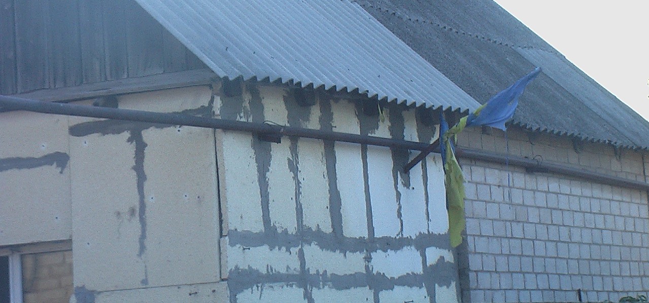 Обычно вначале пишутся стихи, а затем подбирается фото иллюстрация, в этом случае всё было наоборот. На соседней улице стоит этот дом, как начался "майдан" хозяин вывесил флаг. После победы "революции гидности" резко выросли тарифы на ЖКХ, те у кого отопление на газе стали срочно утеплять свои жилища. Вот и этот патриот начал утепляться, но деньги кончились и вот стоит недоутеплённый дом и с обтрёпанным флагом, но зато ... а дальше читайте стихотворение.